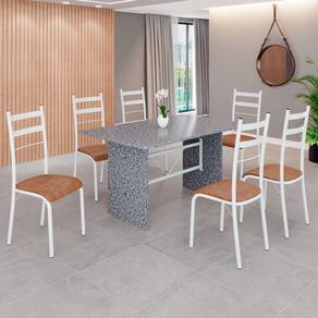 O Conjunto Sala de Jantar Marselha é uma ótima escolha para quem busca combinar estilo e praticidade. Este conjunto apresenta uma mesa retangular com um design elegante e moderno, acompanhada por seis cadeiras. A mesa tem uma estrutura em Granito Ocre, que oferece estabilidade ao conjunto. O tampo em pedra granito ocre apresenta uma estética sofisticada e acolhedora. A tonalidade ocre adiciona calor e elegância ao ambiente, enquanto a pedra granito oferece durabilidade e resistência a riscos e manchas. Essa combinação de cores naturais e resistência prática resulta em um visual clássico e funcional, tornando o tampo em pedra granito ocre uma ótima escolha para aprimorar sua sala de jantar. Medida da Mesa (A x L x P): 76,8 cm x 140 cm x 75 cm Peso da Mesa: 90,58 kg Mesa suporta até: 15.0000 Acabamento da Cadeira/Banco: Pintura Texturizada Acabamento da Mesa: Polido Ambiente Principal: Sala de Jantar Cadeira/Banco Estofada: Somente Assento Estofado Cadeira/Banco estofada: Somente Assento Estofado Cadeira/Banco suporta até: 120.0000 codigo_ean: 7909903553541 Complexidade da Montagem: Média: pode ser montado por mais de uma pessoa e/ou necessite de maior conhecimento para montagem Cor: C. Marrom / Branco Cor do Produto: C. Marrom / Branco De Canto (Canto Alemão): Não Escala de Brilho: Semi-Fosco Espessura do Tampo: 18 mm Formato do Tampo: Retangular Itens Inclusos: 1 Mesa, 4 Cadeiras, Kit Ferragens e Manual de Montagem Linha ou Coleção: Marselha Manual de Montagem e Instalação: https://product-hub-prd.madeiramadeira.com.br/891095/documents/7eca2af2-da1c-4300-b64f-3475a9bd2b3d87cjmarselhabasegranito140.pdf Material da Base da Mesa: Granito Material da Estrutura da Cadeira: Aço Material do Tampo: Granito Medida da Base (A x L x P): 75 cm x 40 cm x 94,10 cm Medida da Cadeira/Banco (A x L x P): 100 cm x 36 cm x 52 cm Medida do Tampo (L x C x E): 75 cm x 140 cm x 1,8 cm Mesa Extensível: Não Necessita Montagem: Sim Origem do Produto: Nacional Peso da Cadeira/Banco: 2,94 kg Possui Apoio Para os Pés: Não Quantidade de Cadeiras: 6 Quantidade de Lugares: 06 Recomendações de Uso, Manutenção e Limpeza: Pano levemente umedecido e pano seco. Não utilizar produtos de limpeza Sistema de Montagem: PARAFUSOS
