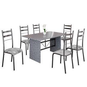 Conjunto Sala de Jantar Mesa Retangular 140x75cm Tampo Granito Ocre 6 Cadeiras Marselha Paraopeba / Mart Prata