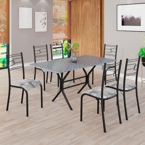 Itens Inclusos: 1 mesa, 6 cadeiras, manual de montagem e ferragens.