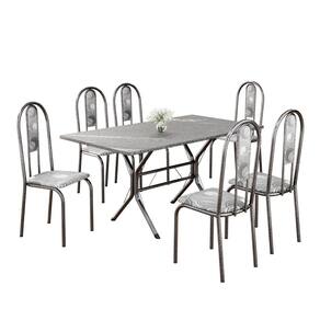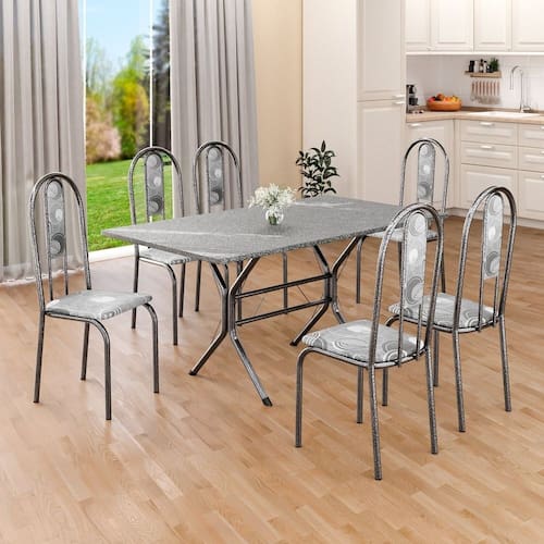 Conjunto Sala de Jantar Mesa Retangular 140x75cm Tampo Granito Topázio 6 Cadeiras Linda Yescasa Paraopeba/Prata