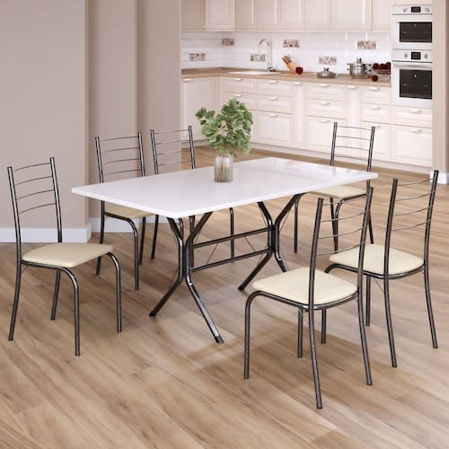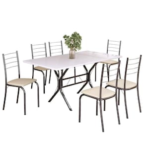 Conjunto Sala de Jantar Mesa Retangular 140x75cm Tampo Madeira Mdp 6 Cadeiras Rio Creme / Mart Prata