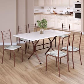 Conjunto Sala de Jantar Mesa Retangular 140x75cm Tampo Madeira Mdp 6 Cadeiras Rio Paraopeba / Marrom