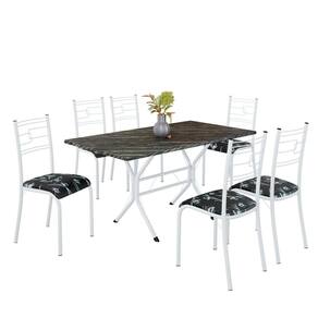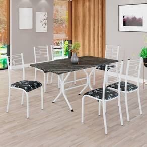 Conjunto Sala de Jantar Mesa Retangular 140x75cm Tampo Madeira Mdp Ardósia Indiana 6 Cadeiras Paraty Preto Floral / Branco