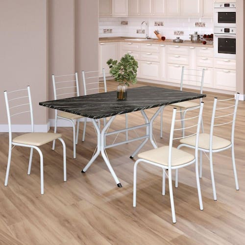 Itens Inclusos: 1 Mesa, 6 Cadeiras, Manual de Montagem e Ferragens