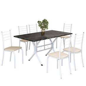 Conjunto Sala de Jantar Mesa Retangular 140x75cm Tampo Madeira Mdp Indiana 6 Cadeiras Rio Creme / Branco