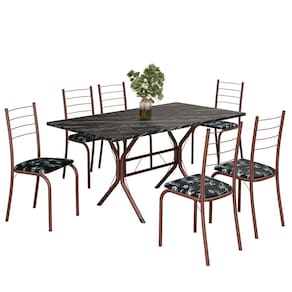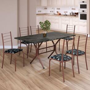 Conjunto Sala de Jantar Mesa Retangular 140x75cm Tampo Madeira Mdp Indiana 6 Cadeiras Rio Preto Floral / Marrom