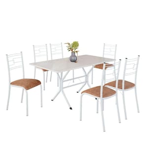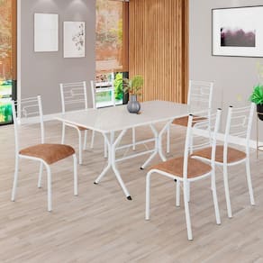 Conjunto Sala de Jantar Mesa Retangular 140x75cm Tampo Madeira Mdp Off White 6 Cadeiras Paraty C. Marrom / Branco
