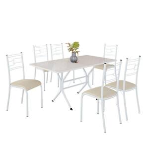 Conjunto Sala de Jantar Mesa Retangular 140x75cm Tampo Madeira Mdp Off White 6 Cadeiras Paraty Creme / Branco