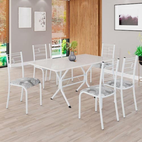 Itens Inclusos: 1 mesa, 6 cadeiras, manual de montagem e ferragens.