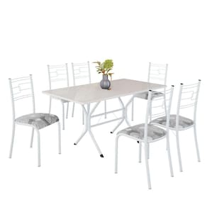 Conjunto Sala de Jantar Mesa Retangular 140x75cm Tampo Madeira Mdp Off White 6 Cadeiras Paraty Paraopeba / Branco