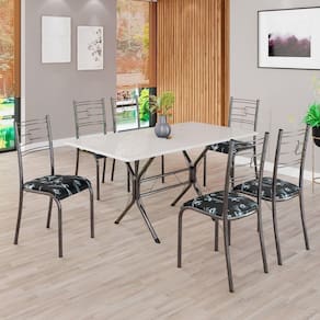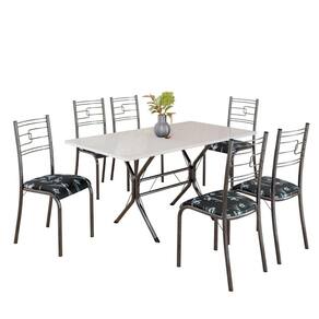 Conjunto Sala de Jantar Mesa Retangular 140x75cm Tampo Madeira Mdp Off White 6 Cadeiras Paraty Preto Floral / Mart Prata