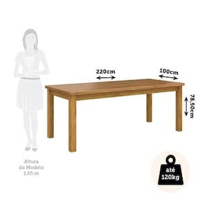 8 Cadeiras Medida da Mesa (A x L x P): 78,50 x 220 x 100 Peso da Mesa: 50,3 kg Mesa suporta até: 120 kg Acabamento da Cadeira/Banco: Pintura UV Acabamento da Mesa: Pintura UV Acompanha Manual de Instalação: Sim Ambiente Principal: Sala de Jantar Cadeira/Banco estofada: Não Cadeira/Banco suporta até: 120 kg codigo_ean: 7900288252722 Complexidade da Montagem: Baixa: pode ser montado por uma pessoa sozinha Configuração do Conjunto: Mesa com Cadeiras Cor: Nogueira Cor do Produto: Nogueira Cor Secundária: Marrom De Canto (Canto Alemão): Não Design da Base: 4 Pés Escala de Brilho: Semi-Brilho Espessura do Tampo: 40 mm Estrutura do Assento: Madeira Maciça Formato do Tampo: Retangular Informações Complementares: Possui cantos arredondados e acabamentos com Pintura UV e Verniz Acetinado Atóxico. Encostos das cadeiras no estilo ripado e mesa com pés maciços de 8,5cm x 8,5cm (LxP), aumentando a estabilidade e conforto. Itens Inclusos: 1 Mesa, 8 Cadeiras, Kit Ferragens e Manual de Montagem Linha ou Coleção: Creta Manual de Montagem e Instalação: https://cdn2.madeiramadeira.com.br/atributo/tabulae-moveis/3264086-6341-17598489170595.pdf Marca: Espresso Móveis Material da Base da Mesa: Madeira Maciça Material da Estrutura da Cadeira: Madeira Maciça Material do Tampo: Madeira Maciça Material Principal: Madeira Maciça Medida da Cadeira/Banco (A x L x P): 107 x 40,50 x 42,50 Medida do Tampo (L x C x E): 220 x 100 x 4 Mesa Extensível: Não Necessita Montagem: Sim Origem do Produto: Nacional Peso da Cadeira/Banco: 6,15 kg Possui Apoio para Braços: Não Possui Apoio Para os Pés: Não Possui Vidro: Não Quantidade de Cadeiras: 8 Quantidade de Lugares: 08 Recomendações de Uso, Manutenção e Limpeza: Limpar com flanela ou pano macio seco, não utilizar produtos abrasivos, desengordurantes, álcool ou solvente. Sistema de Montagem: Parafuso, cavilha e cola. Tipo de Madeira Maciça da Base da Mesa: Pinus Tipo de Madeira Maciça do Tampo: Pinus