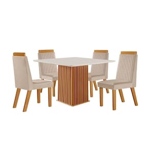 Conjunto Sala de Jantar Mesa Riviera com Tampo de Vidro 90cm e 4 Cadeiras Riviera LJ Moveis Transforme sua sala de jantar com o charme e a sofisticacao do Conjunto Sala de Jantar Mesa com Tampo de Vidro 90cm e 4 Cadeiras em MDF Riviera LJ Moveis. Com design contemporaneo, a mesa possui tampo em taburato com quinas abauladas e vidro temperado serigrafado de 4mm, garantindo beleza e durabilidade. As cadeiras, com estrutura 100 em MDF, apresentam encosto bordado e espuma D20 no assento e D18 no encosto, oferecendo conforto e estilo. Cada cadeira suporta ate 100kg, proporcionando seguranca no uso diario. Ideal para quem busca elegancia e aconchego em cada refeicao.