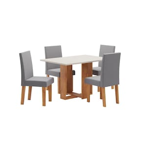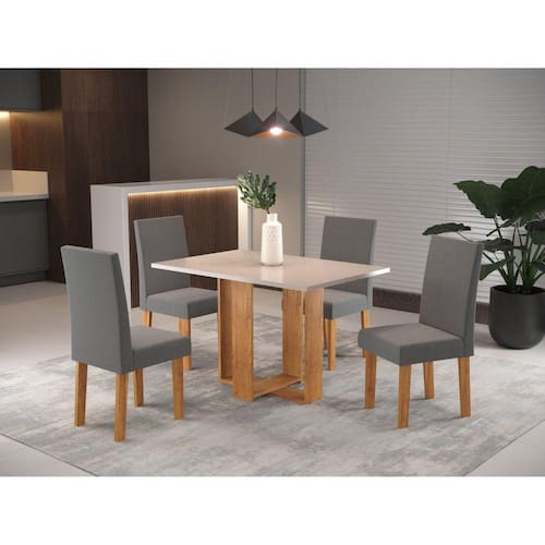 Mesas são indispensáveis para o funcionamento da casa e é no cômodo de confraternização que elas ganham protagonismo. Composto por peças de muito charme, o Conjunto Romantic e Venus torna o uso desse móvel importante com 4 cadeiras para garantir uma usabilidade plena para o seu dia a dia. Medida da Mesa (A x L x P): 79 x 120 x 80cm Peso da Mesa: 24.5 Mesa suporta até: 50 Acabamento da Cadeira/Banco: Pintura UV Acabamento da Mesa: Pintura UV Ambiente Principal: Sala de Jantar Cadeira/Banco estofada: Encosto e Assento Estofados Cadeira/Banco suporta até: 90 Complexidade da Montagem: Média: pode ser montado por mais de uma pessoa e/ou necessite de maior conhecimento para montagem Cor: Mel/Blonde/Cinza Cor da Base: Marrom Cor do Produto: Mel/Blonde/Cinza Cor do Tampo: Bege Cor Secundária: Cinza De Canto (Canto Alemão): Não Enchimento do Assento: Espuma D-20 Enchimento do Encosto: Espuma D-12 Escala de Brilho: Semi-Brilho Espessura do Tampo: 25 Estrutura do Assento: MDP/Espuma Estrutura do Encosto: MDP/Espuma Formato do Tampo: Retangular Itens Inclusos: 1 Mesa, 4 Cadeiras, Kit Ferragens e Manual de Montagem Manual de Montagem e Instalação: https://cdn2.madeiramadeira.com.br/atributo/viero-moveis/1255629-mesa-vicenza-com-cadeira-venus.pdf Material da Base da Mesa: MDP Material da Estrutura da Cadeira: MDF/MDP Material do Tampo: MDP Medida da Cadeira/Banco (A x L x P): 98,5cm x 42cm x 48cm Medida do Tampo (L x C x E): 120cmx80cmx2,5cm Mesa Extensível: Não Necessita Montagem: Sim Origem do Produto: Nacional Peso da Cadeira/Banco: 7.1 Possui Apoio Para os Pés: Não Quantidade de Lugares: 04 Recomendações de Uso, Manutenção e Limpeza: Limpar com pano levemente umedecido com água Revestimento da Cadeira/Banco: Veludo Sistema de Montagem: Parafusos e cavilhas