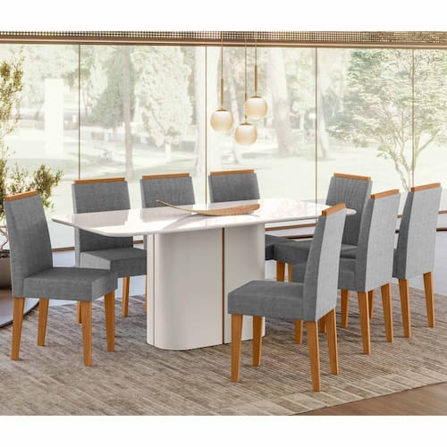 Conjunto Sala de Jantar Mesa Serena 1,80m com 8 Cadeiras Cecilia Off White/Friso Ypê/Al07 - New Ceval