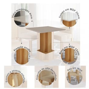 A Sala de jantar Sophia 95x95 com 4 cadeiras Maia é ideal para reunir a família em jantares agradáveis. A mesa Sophia possui tampo em MDF/vidro com bordas chanfradas e acabamento em laca, enquanto as cadeiras Maia, feitas em MDF com pintura UV, oferecem conforto com assento e encosto em espuma de alta densidade. Com um design inovador, a Cimol busca proporcionar um estilo moderno ao ambiente.