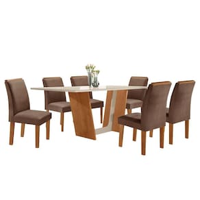 Receber o pessoal em casa para um delicioso jantar é tudo de bom, né? Marromhor ainda é ter uma mesa que enriquece o ambiente e acomoda todo mundo com maestria. Claro que esse é o caso do modelo Luisa que agrega sofisticação ao espaço por combinar a base com o tampo off white. Ah, as cadeiras Luisa também são ótimas acompanhantes formando o conjunto perfeito ao oferecer um toque suave e elegante com o revestimento em linho na cor turim. Preparado para momentos incríveis no seu lar aconchegante lar? Medida da Mesa (A x L x P): 79cmx160cmx80cm Peso da Mesa: 43.8 Mesa suporta até: 30 Acabamento da Cadeira/Banco: Pintura Acabamento da Mesa: Pintura UV Almofada do assento: Fixa Altura do Conjunto: Ambiente Principal: Sala de Jantar Apoio para Braços Estofado: Cadeira/Banco estofada: Encosto e Assento Estofados Cadeira/Banco suporta até: 120 Complexidade da Montagem: Média: pode ser montado por mais de uma pessoa e/ou necessite de maior conhecimento para montagem Cor: Cinamomo/Off White/Suede Animale Cor da Base: Cor do Produto: Cinamomo/Off White/Suede Animale Cor do Tampo: Bege Cor Flex: Cor Secundária: Bege De Canto (Canto Alemão): Não Design da Base: Enchimento do Assento: Espuma D-23 Enchimento do Encosto: Espuma D-20 Escala de Brilho: Fosco Espessura do Tampo: 22 Espessura do Vidro: mm Estrutura do Assento: MDF Estrutura do Encosto: Formato do Tampo: Retangular Informações Complementares: Itens Inclusos: 1 Mesa, 6 Cadeiras, Kit Ferragens e Manual de Montagem Linha ou Coleção: Manual de Especificação Técnica: Manual de Montagem e Instalação: https://cdn2.madeiramadeira.com.br/atributo/cel-moveis/978233-conjunto-luisa-1-60.pdf Material da Base da Mesa: MDF Material da Estrutura da Cadeira: MDF Material do Tampo: Vidro/MDF Medida da Base (A x L x P): 78cmx43cmx95cm Medida da Cadeira/Banco (A x L x P): 97,5cmx44cmx56cm Medida do Canto Alemão (A x L x P): Medida do Suporte Giratório (L x C x E): Medida do Tampo (L x C x E): 160cmx80cmx2,2cm Mesa Extensível: Não Montagem Flex: Necessita Montagem: Sim Origem do Produto: Nacional Peso da Cadeira/Banco: 9.25 Possui Apoio para Braços: Possui Apoio Para os Pés: Não Possui Suporte Giratório: Não Quantidade de Lugares: 06 Recomendações de Uso, Manutenção e Limpeza: Limpeza com pano macio e levemente umedecido. Não utilizar solventes a base e de inflamáveis. Não utilizar produtos abrasivos. Revestimento da Cadeira/Banco: Suede Sistema de Montagem: Parafusos Tipo de Madeira Maciça da Base da Mesa: Tipo de Madeira Maciça do Tampo: Vidro Temperado: Sim