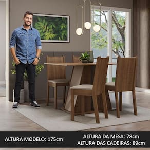 As cadeiras são produzidas em MDF e MDP, com assento estofado em material sintético bege, que é fácil de limpar e combina com os mais variados estilos de decoração.