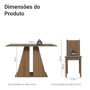 A mesa possui tampo retangular em MDP, com ótimo espaço para quatro pessoas. O pé é no formato pedestal, que agrega beleza e conforto.