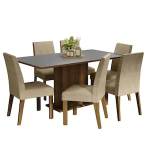 Conjunto Sala de Jantar Mesa Tampo de Madeira 6 Cadeiras Rustic/Cinza/Imperial Renata Madesa - Marrom