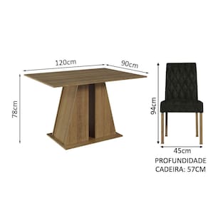 A mesa retangular acomoda até quatro pessoas. O tom amadeirado agrega beleza ao produto e combina com os mais variados ambientes. Muito práticas, as cadeiras são fabricadas em MDF e MDP, com encosto em pintura e assento estofado.