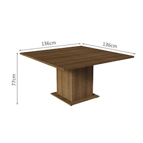 A mesa é espaçosa e comporta muito bem até oito pessoas. Possui base em pedestal e tampo retangular em MDP.