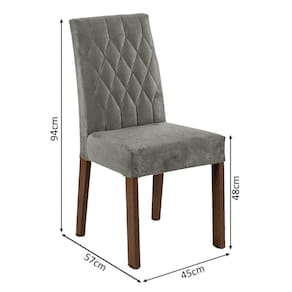 As cadeiras são robustas, fabricadas com estrutura em MDP e MDF e encosto e assento estofados com espumas de alta densidade. O revestimento é em tecido Suede Silver, de toque macio e suave.