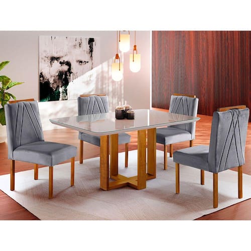 Conjunto Sala de Jantar 4 Lugares Mesa e Cadeiras - Móveis Mix Com os Produtos Móveis Mix Você Leva Conforto e Beleza Para o Seu Lar. Design Moderno e Sofisticado.