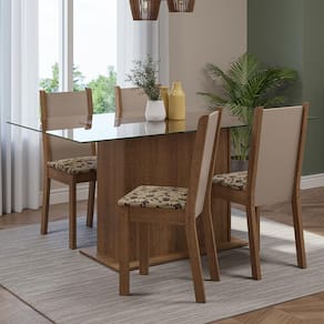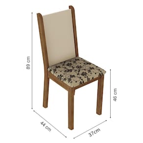 As cadeiras são fabricadas em MDF/MDP, garantindo qualidade e resistência. Além disso, o assento é estofado em tecido Floral Bege Marrom, proporcionando um toque de conforto extra.