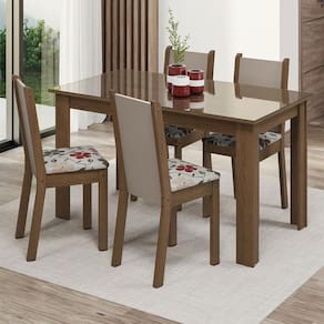 COR: Marrom | Garantia: 3 meses contra defeitos de fabricação | Dimensões - Altura: 76,5 cm | Dimensões - Largura: 136 cm | Dimensões - Profundidade: 75 cm | Peso aproximado: 49 kg | Quantidade de Lugares: 4 lugares | Produto: Conjunto Sala de Jantar | Marca: Madesa | RBN: Casa/Móveis/Móveis para Sala de Jantar/Conjuntos para Sala de Jantar | Material: MDP/MDF | Material para Filtro: MDP/MDF | Estado de Origem: RS | Conteúdo da embalagem: 1 Conjunto de Jantar | Instruções/Cuidados: Utilize um pano limpo, levemente umedecido e seque em seguida a superfície. Não usar produtos químicos ou abrasivos para a limpeza. Recomendamos polir seu móvel com lustra-móveis duas a três vezes por ano. | Nome do Simples no Fornecedor: Conjunto Sala de Jantar Mesa Tampo de Vidro 4 Cadeiras Rustic/Crema/Hibiscos Suzy Madesa | Produto precisa de Montagem?: Sim | Descrição do Tamanho: 76,5 cm x 136 cm x 75 cm | Profundidade Produto Com Embalagem (cm): 154.8 | Largura Produto Com Embalagem (cm): 78 | Altura do Produto com Embalagem (cm): 101 | Peso Produto Com Embalagem (Kg): 49,5 | Fabricante: Madesa | Contato do Fabricante: contato@madesa.com | Formato da Mesa: Retangular | Quantidade de caixas de embalagem: 4 Cor: Rustic/Crema/Hibiscos