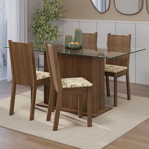 A mesa é especialmente projetada com uma base em pedestal e um tampo de vidro, que oferece beleza e um ótimo espaço para aproveitar as suas refeições com muito conforto.