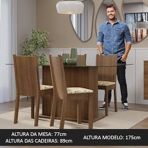 Além disso, as cadeiras possuem estrutura em MDF/MDP e contam com assento estofado com tecido floral Lírio Bege, que proporciona um toque suave e macio.