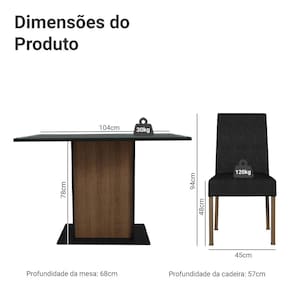 O acabamento amadeirado Rustic e as cadeiras estofadas com espuma de alta desnidade em tom Oxford trazem um toque moderno e elegante ao ambiente.