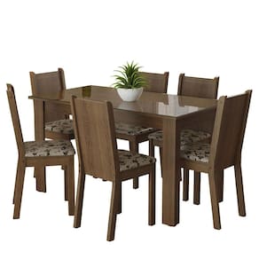 - Seis (6) Cadeiras com assento em tecido Floral Bege Marrom