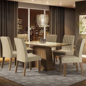 Esperando o que para dar uma cara nova à sua sala de jantar? Conheça o Conjunto de Mesa e Cadeiras Stéfani da Madesa!