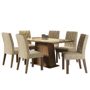 Conjunto Sala De Jantar Mesa Tampo De Vidro 6 Cadeiras Rustic/Crema/imperial Stéfani Madesa - Marrom