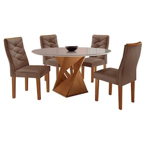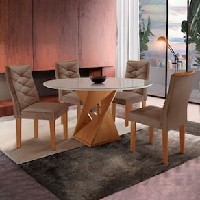 Na hora de receber visitas para refeições em casa você não quer se preocupar com mais nada além do cardápio, certo? Então para ter certeza de que seus convidados se sentirão bem recepcionados invista no Conjunto de Mesa de Jantar Barcelona, um kit completo e com tudo o que você precisa para um evento perfeito: 4 cadeiras aconchegantes, tampo amplo e um design de encher os olhos. Além do visual moderno, a combinação de cores forma ainda um móvel daqueles dignos de muitos elogios e que será palco para ótimos momentos. Medida da Mesa (A x L x P): 79cmx100cmx100cm Peso da Mesa: 38.9 Mesa suporta até: 30 Acabamento da Cadeira/Banco: Pintura Acabamento da Mesa: Pintura UV Almofada do assento: Fixa Altura do Conjunto: Ambiente Principal: Sala de Jantar Apoio para Braços Estofado: Cadeira/Banco estofada: Encosto e Assento Estofados Cadeira/Banco suporta até: 120 Complexidade da Montagem: Média: pode ser montado por mais de uma pessoa e/ou necessite de maior conhecimento para montagem Cor: Cinamomo/Off White/Suede Animale Cor da Base: Cor do Produto: Cinamomo/Off White/Suede Animale Cor do Tampo: Bege Cor Flex: Cor Secundária: Bege De Canto (Canto Alemão): Não Design da Base: Enchimento do Assento: Espuma D-23 Enchimento do Encosto: Espuma D-20 Escala de Brilho: Fosco Espessura do Tampo: 29 Espessura do Vidro: mm Estrutura do Assento: MDF Estrutura do Encosto: Formato do Tampo: Redondo Informações Complementares: Itens Inclusos: 1 Mesa, 4 Cadeiras, Kit Ferragens e Manual de Montagem Linha ou Coleção: Manual de Especificação Técnica: Manual de Montagem e Instalação: https://cdn2.madeiramadeira.com.br/atributo/cel-moveis/978128-conjunto-barcelona.pdf Material da Base da Mesa: MDF Material da Estrutura da Cadeira: MDF Material do Tampo: Vidro/MDF Medida da Base (A x L x P): 76,5cmx45cmx45cm Medida da Cadeira/Banco (A x L x P): 97,5cmx44cmx59cm Medida do Canto Alemão (A x L x P): Medida do Suporte Giratório (L x C x E): Medida do Tampo (L x C x E): 100cmx100cmx2,9cm Mesa Extensível: Não Montagem Flex: Necessita Montagem: Sim Origem do Produto: Nacional Peso da Cadeira/Banco: 8.75 Possui Apoio para Braços: Possui Apoio Para os Pés: Não Possui Suporte Giratório: Não Quantidade de Lugares: 04 Recomendações de Uso, Manutenção e Limpeza: Limpeza com pano macio e levemente umedecido. Não utilizar solventes a base e de inflamáveis. Não utilizar produtos abrasivos. Revestimento da Cadeira/Banco: Suede Sistema de Montagem: Parafusos Tipo de Madeira Maciça da Base da Mesa: Tipo de Madeira Maciça do Tampo: Vidro Temperado: Sim