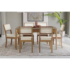 Abaixo segue os produtos do KIT: Sala de Jantar Completa Mira Premium Madeira Maciça c/ Tampo Madeirado c/ Vidro 160x90cm e 6 Cadeiras Lola Carvalho/Freijo Bronze - Linho Bege Argila - Kappesberg