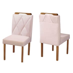 Informações Técnicas Cadeira: Material da Estrutura: Madeira Maciça de Eucaliptus Tratado, 100 Imunizado e Seco em Estufa. Assento: Espuma D26 Soft Real. Encosto: Espuma D18 Soft Real. Aplique no Encosto-Puxador-: Sim. Assento/Pés: Reforçado. Tecido Cadeira: Veludo. Cor do Tecido: Nude Embalagem Cadeiras: Caixa de Papelão -duas cadeiras montadas por caixa-. Capacidade em KG por Lugar: Aproximadamente 150kg.