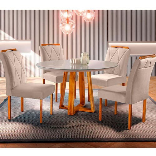 Conjunto Sala de Jantar 4 Lugares Mesa Redonda Natalle e Cadeiras Móveis Mix