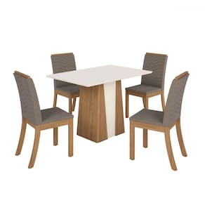 O(a) Conjunto Sala de Jantar Orus 120 Cm Canto Reto 4 Cadeiras Natural/Off White e Bege é produzido em MDF e MDP na escala de brilho Brilhante e Fosco, e possui um grau de dificuldade de montagem: Médio.