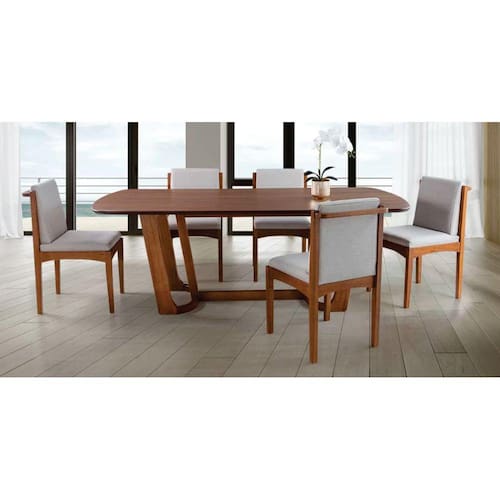 Conjunto Sala de Jantar Perfetto Mesa 2 Metros com 6 Cadeiras Estofadas.
