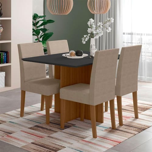 Conjunto Sala De Jantar Retangular Mesa Helo 120cm E 04 Cadeiras Josi Poliman Móveis Carvalho Com Grafite Com design contemporaneo a Mesa de Jantar Helo com 04 cadeiras e perfeita para completar seu ambiente. Possui base robusta em formato de + (mais), tampo retangular 120x90cm em MDP 25mm com bordas chanfradas que valorizam o produto deixando o modelo ainda mais requintado. Acompanha 04 cadeiras modelo Josi resistentes, ergonomicamente projetadas para proporcionar mais conforto em seus momentos entre amigos e familiares. Cadeiras revestidas em tecido suede aveludado liso que oferece maior suavidade e maciez, pes em MDF 25mm, assentos com espuma densidade D20 que garante uma excelente acomodacao, disponivel no padrao. Produtos com sapatas plasticas garantindo melhor durabilidade e estabilidade, acabamento em pintura UV que preserva a coloracao alem de facilitar na limpeza, ecologicamente corretos com embalagens preparadas cuidadosamente afim de evitar permitindo que os produtos cheguem em perfeito estado em sua casa. Permite a combinacao com os mais variados ambientes. Qualidade que so a Poliman oferece em seus produtos. DIMENSOES Altura: Mesa: 80,00 / Cadeira 96,00cm Largura: Mesa: 120,00 / Cadeira: 41,00cm Profundidade: Mesa: 90,00 / Cadeira 44,00cm Peso: 66,4Kg