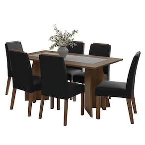 Com seis cadeiras estofadas, o conjunto oferece espaço, conforto e sofisticação que sua família precisa. O diferencial está no detalhe amadeirado no topo das cadeiras, que valoriza ainda mais o design e proporciona maior durabilidade ao móvel.