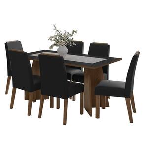 Com seis cadeiras estofadas, o conjunto oferece espaço, conforto e sofisticação que sua família precisa. O diferencial está no detalhe amadeirado no topo das cadeiras, que valoriza ainda mais o design e proporciona maior durabilidade ao móvel.
