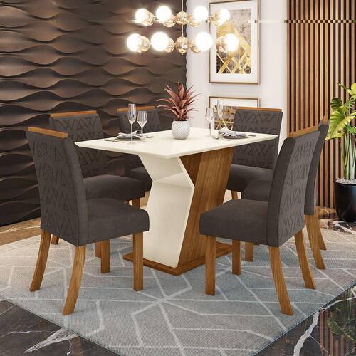 CARACTERÍSTICAS GERAIS: Estilo: Moderno Linha: Zuri Ambiente Principal: Sala de Jantar Marca: Casa 812 Origem: Nacional Garantia do Fornecedor: 3 Meses Itens Inclusos: 1 conjunto sala de jantar e Manual de Instruções