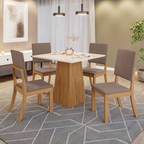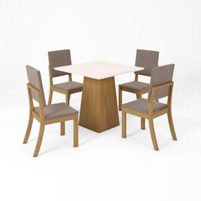 O conjunto de mesa Kaia é ideal para quem busca praticidade e elegância na hora de decorar a sala de jantar ou cozinha. Com um tampo em MDF de alta qualidade e quatro cadeiras confortáveis, ele garante não só um espaço para as refeições, mas também para momentos de convivência com a família e amigos. Além disso, seu design moderno e sofisticado confere um toque especial ao ambiente, tornando-o ainda mais agradável e acolhedor. Com o conjunto Kaia, é possível desfrutar de momentos deliciosos à mesa com todo o conforto e estilo que você merece. Medida da Mesa (A x L x P): 80 x 90 x 90 Cm Peso da Mesa: 25 Mesa suporta até: 30 Acabamento da Cadeira/Banco: Pintura Texturizada Acabamento da Mesa: Pintura Texturizada Altura do Conjunto: 80 Ambiente Principal: Sala de Jantar Cadeira/Banco estofada: Encosto e Assento Estofados Cadeira/Banco suporta até: 120 Complexidade da Montagem: Alta: deve ser montado por um montador especializado Cor: Marrom/Off White/Marrom Amêndoa Cor do Produto: Marrom/Off White/Marrom Amêndoa Cor Secundária: Bege De Canto (Canto Alemão): Não Enchimento do Assento: Espuma D-18 Escala de Brilho: Fosco Espessura do Tampo: 25 Estrutura do Assento: MDP/MDF Formato do Tampo: Quadrado Informações Complementares: • Tampo com Acabamento em usinagem negativa; • Borda Reta com Pintura Laqueada que garante mais Resistência e durabilidade; Itens Inclusos: 1 Mesa, 4 Cadeiras, Kit Ferragens, Manual de Montagem Linha ou Coleção: Kaia Manual de Montagem e Instalação: https://cdn2.madeiramadeira.com.br/atributo/henn-sala-de-jantar/1334468-se548-conj-sala-jantar-kaia-4-cad.pdf Material da Base da Mesa: MDP Material da Estrutura da Cadeira: MDF/MDP Material do Tampo: MDF Medida da Cadeira/Banco (A x L x P): 94,5 x 41,5 x 53,5 Medida do Tampo (L x C x E): 90 x 90 x 2,5 Cm Mesa Extensível: Não Necessita Montagem: Sim Origem do Produto: Nacional Peso da Cadeira/Banco: 7 Possui Apoio para Braços: Não Possui Apoio Para os Pés: Não Possui Suporte Giratório: Não Quantidade de Lugares: 04 Recomendações de Uso, Manutenção e Limpeza: Para limpeza de seu móvel, use uma flanela seca ou umedecida. Não utilize produtos químicos que possam danificar o produto. Revestimento da Cadeira/Banco: Suede Sistema de Montagem: Parafusos e Cavilhas