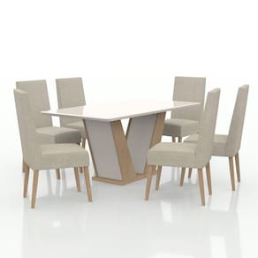 A Cadeira Montana tem estrutura em 100% madeira maciça de eucalipto, proporcionando a você um conforto diferenciado além de um bem estar incrível para aqueles momentos em família além da disponibilização de um cômodo conforto para suas visitas. Seu design lindo dará um toque sofisticado para o ambiente de sua casa fazendo com que aquele espaço seja um dos destaques da mesma. A Mesa de Jantar Noruega é uma daquelas mesas que fará toda diferença em sua sala de jantar. Produzida com um design moderno, o desenho de sua base é um dos grandes destaques da peça. Medida da Mesa (A x L x P): 80cm x 90cm x 160cm Peso da Mesa: 500000 kg Mesa suporta até: 1000000.0000 Acabamento da Cadeira/Banco: Pintura UV Acabamento da Mesa: Pintura UV Almofada do assento: Fixa Altura do Conjunto: 80 cm Ambiente Principal: Sala de Jantar Cadeira/Banco estofada: Encosto e Assento Estofados Cadeira/Banco Estofada: Encosto e Assento Estofados Cadeira/Banco suporta até: 150.0000 codigo_ean: 7909903050668 Complexidade da Montagem: Baixa: pode ser montado por uma pessoa sozinha Cor: Inovata Cor do Produto: Inovata De Canto (Canto Alemão): Não Design da Base: Em V Enchimento do Assento: Espuma D-23 Enchimento do Encosto: Espuma D-18 Escala de Brilho: Brilhante Espessura do Tampo: 250000 mm Formato do Tampo: Retangular Itens Inclusos: 1 Mesa com 6 Cadeiras, kit de ferragem e manual de montagem Manual de Montagem e Instalação: https://product-hub-prd.madeiramadeira.com.br/728795/documents/2829cc39-b51d-442f-9580-86f849f4b5ebnoruegacadeiramontanacerta.pdf Material da Base da Mesa: MDF/MDP Material da Estrutura da Cadeira: Madeira Maciça Material do Tampo: Vidro/MDF Material Principal: Madeira Maciça/MDF Medida da Base (A x L x P): 78cm x 35cm x 100cm Medida da Cadeira/Banco (A x L x P): 100cm x 43cm x 55cm Medida do Tampo (L x C x E): 90cm x 130cm x 2,9cm Mesa Extensível: Não Necessita Montagem: Sim Origem do Produto: Nacional Peso da Cadeira/Banco: 88000 kg Possui Apoio para Braços: Não Possui Apoio Para os Pés: Não Possui Suporte Giratório: Não Quantidade de Cadeiras: 6 Recomendações de Uso, Manutenção e Limpeza: Limpar com pano seco e limpo. Revestimento da Cadeira/Banco: Linho Sistema de Montagem: Parafusos, Cavilhas Vidro Temperado: Não