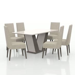 A Cadeira Montana tem estrutura em 100% madeira maciça de eucalipto, proporcionando a você um conforto diferenciado além de um bem estar incrível para aqueles momentos em família além da disponibilização de um cômodo conforto para suas visitas. Seu design lindo dará um toque sofisticado para o ambiente de sua casa fazendo com que aquele espaço seja um dos destaques da mesma. A Mesa de Jantar Noruega é uma daquelas mesas que fará toda diferença em sua sala de jantar. Produzida com um design moderno, o desenho de sua base é um dos grandes destaques da peça. Medida da Mesa (A x L x P): 80cm x 90cm x 160cm Peso da Mesa: 500000 kg Mesa suporta até: 1000000.0000 Acabamento da Cadeira/Banco: Pintura UV Acabamento da Mesa: Pintura UV Almofada do assento: Fixa Altura do Conjunto: 80 Ambiente Principal: Sala de Jantar Cadeira/Banco estofada: Encosto e Assento Estofados Cadeira/Banco Estofada: Encosto e Assento Estofados Cadeira/Banco suporta até: 150.0000 codigo_ean: 7909903050651 Complexidade da Montagem: Baixa: pode ser montado por uma pessoa sozinha Cor: Wengue Cor do Produto: Wengue De Canto (Canto Alemão): Não Design da Base: Em V Enchimento do Assento: Espuma D-23 Enchimento do Encosto: Espuma D-18 Escala de Brilho: Brilhante Espessura do Tampo: 250000 mm Formato do Tampo: Retangular Itens Inclusos: 1 Mesa com 6 Cadeiras, kit de ferragem e manual de montagem Manual de Montagem e Instalação: https://product-hub-prd.madeiramadeira.com.br/728793/documents/6d36a8e0-c566-4d4b-bb23-76f1d9a07d95noruegacadeiramontanacerta.pdf Material da Base da Mesa: MDF/MDP Material da Estrutura da Cadeira: Madeira Maciça Material do Tampo: Vidro/MDF Material Principal: Madeira Maciça/MDF Medida da Base (A x L x P): 78cm x 35cm x 100cm Medida da Cadeira/Banco (A x L x P): 100cm x 43cm x 55cm Medida do Tampo (L x C x E): 90cm x 130cm x 2,9cm Mesa Extensível: Não Necessita Montagem: Sim Origem do Produto: Nacional Peso da Cadeira/Banco: 88000 kg Possui Apoio para Braços: Não Possui Apoio Para os Pés: Não Possui Suporte Giratório: Não Quantidade de Cadeiras: 6 Recomendações de Uso, Manutenção e Limpeza: Limpar com pano seco e limpo. Revestimento da Cadeira/Banco: Linho Sistema de Montagem: Parafusos, Cavilhas Vidro Temperado: Não