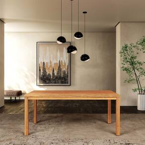 Conjunto Sala Jantar Nature: Balcão Buffet, Mesa, Banco e Cadeiras Rústico Claro Madeira Pinus